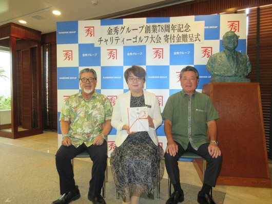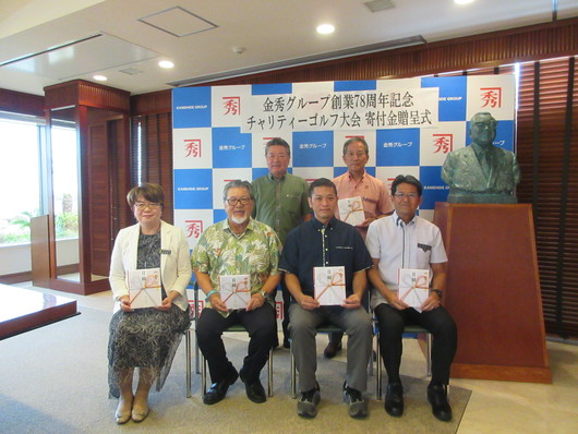 去る、8月6日(水)・7日(木)の両日、金秀グループ創業78周年を記念し、社会奉仕の一環としてのチャリティーイベント『金秀グループ創業78周年記念チャリティーゴルフ大会』が開催されました。この大会に伴うチャリティー収益金を(公財)那覇市育英会を含め、人材育成財団等5団体へご寄付いただきました。