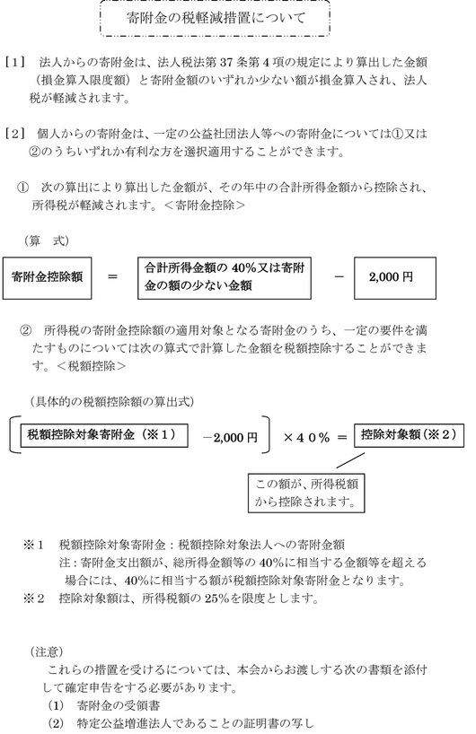 ご賛同いただける企業及び個人の方々は、お手数ですが下記の寄附申込書にてFAX送信か、又はお電話を下さいますようお願いします。なお、税法上の優遇措置が受けられます。